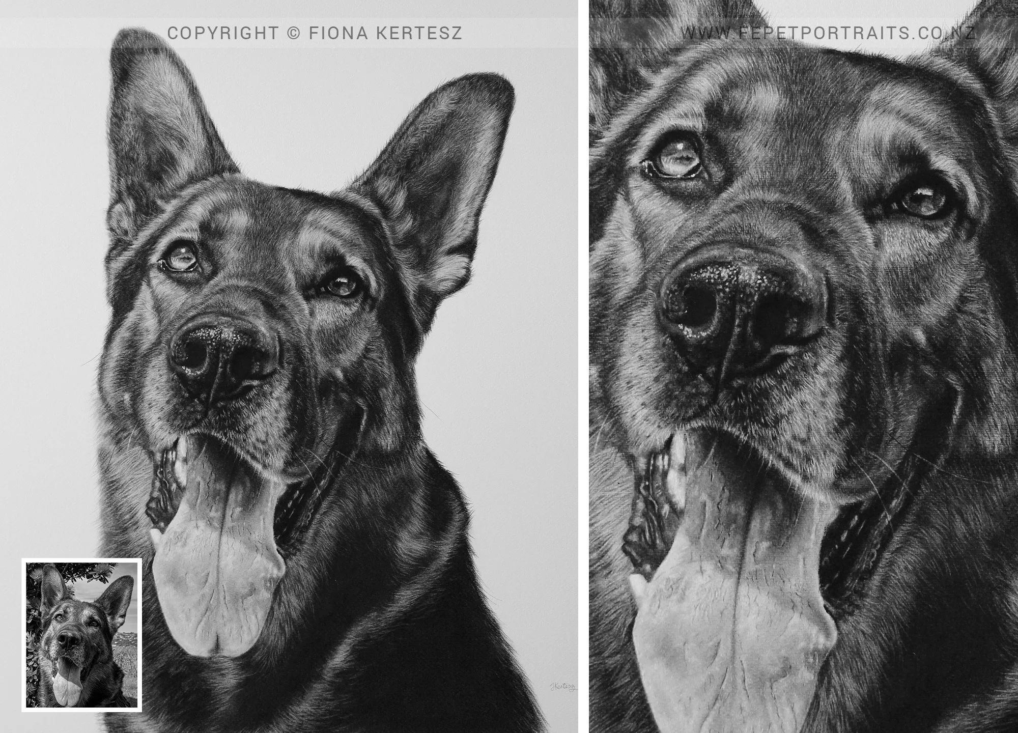 Isn’t he the most gorgeous looking boy. A police dog who worked right up until the very end, it was such an honour to be able to draw this boy. The largest pencil portrait I have done to date, and I was so thrilled with how it came out. Janna and Tim loved the portrait, and her comments can be read below.