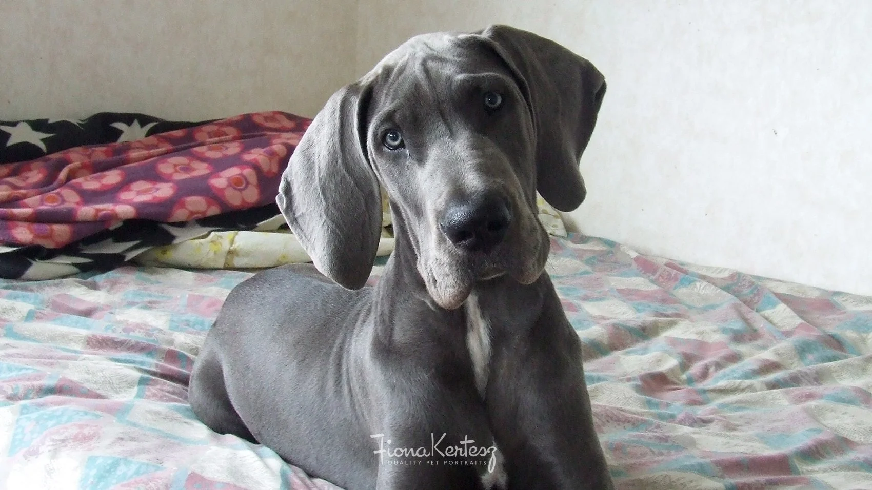 This is China, a blue Great Dane puppy. A lovely example for a pet portrait, both in oil and graphite. Clear and sharp with great detail - it’s always good if you can get on their level.